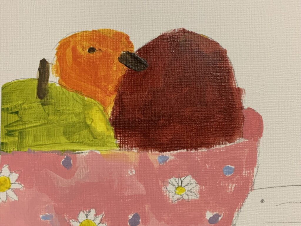 Today in art class, the students used the comparative method of drawing to draw a fruit still life in pencil on canvas paper. Then they painted their fruit drawings with colorful acrylic paint. Sweet! Scroll through the slideshow to see a finished fruit still life painting.